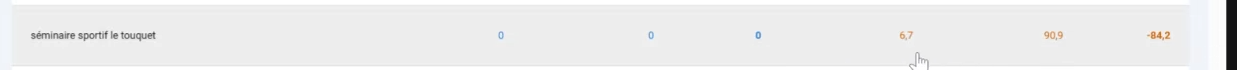 - “Séminaire entreprise Le Touquet” : progression d’environ 86 % (99 → 14)